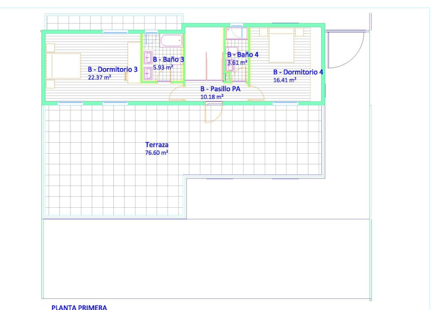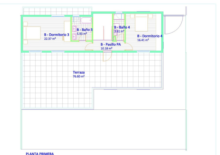 - Planta primera de 68 m2 con terraza de 78 m2.